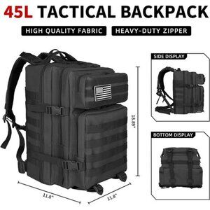 45L Tactical Backpack Molle Military Hiking Camping Bug Out Bag Black Large