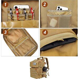 PAKNADA 45L Tactical Backpack Khaki with a Bottle Holder is the perfect choice for outdoor enthusiasts who value durability and practicality. Whether you're hiking, camping, or exploring, this backpack offers everything you need for a comfortable and organized adventure. Its waterproof design ensures your gear stays dry, even in unpredictable weather, while the spacious 45L capacity provides ample storage for all your essentials.