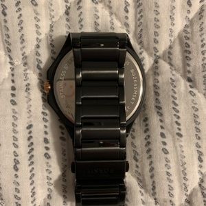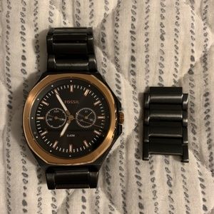 45MM black stainless steel Fossil watch with gold accents. Additional watch links included.