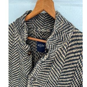 Amazing piece from 45rpm made from a very thick and rustic linen knit in a herringbone pattern. Button closure. Extended sleeves.