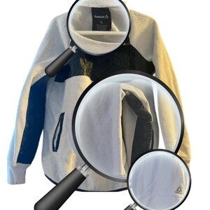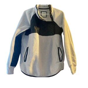 Stylish quilted sweatshirt. Features black and white design. Cozy and warm.