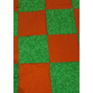 46 X 30 Vintage Patchwork Quilted Baby Blanket Orange & Green or Lapghan Blanket