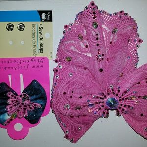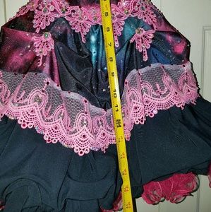This is a custom made dress, worn once. I paid $675 to have it made. Fits approximately 4-6 (see measurements in pics). Adjustable Lace-up back and the snaps on the neck can be moved as well. We just pinned on the bustle bow but snaps are included to add if desired. Includes necklace and hairbow.