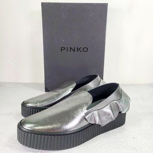 $460 NWT Pinko Silver Chunky Platform Shoes 9 Metallic Ruffle Leather Loafer