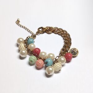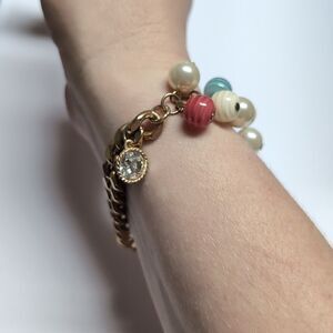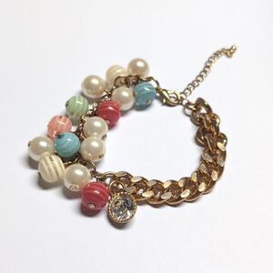 461 Gold Chain Faux Pearl Multicolor Beaded Rhinestone Tennis Bracelet