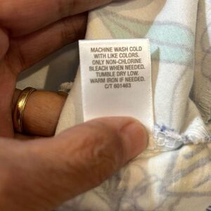 Fabric: 97% cotton, 3% spandex/lining is 100% polyester. Machine washable.
