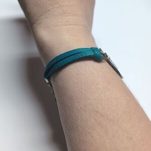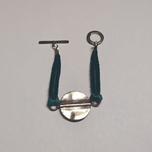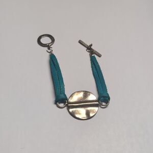 Blue Leather Silver Coin Tennis Bracelet with Toggle Clasp