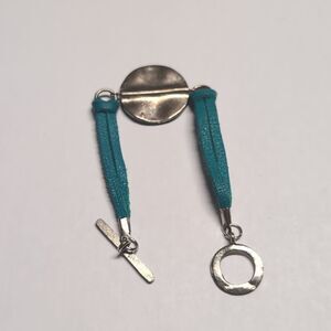 468 Blue Leather Silver Coin Tennis Bracelet with Toggle Clasp