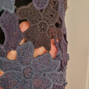 Condition - Preowned and in good condition other than one noted flaw: there is one small area where the crochet has come undone (see picture; not super noticeable when wearing).