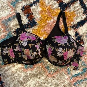 Torrid tee shirt bra 46d has floral and skull print. Great used condition, just no longer fits