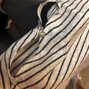 Lucky Brand Short sleeve blouse with buttons on the shoulder, striped