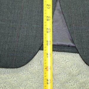The 46S Men's Joseph & Feiss Blazer in Dark Charcoal is a stylish and classic sport coat made from 100% wool. With a short length, windowpane pattern, and two-button front closure, this blazer is perfect for any season. The regular fit, single-breasted design, and notch lapel give it a sophisticated and designer look. Ideal for men looking for a versatile and high-quality jacket to add to their wardrobe.