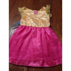 Good Used Condition Girl's Size 4-6X Disney Fancy Nancy Jakks Pacific Short Sleeve Yellow, Pink, and Blue Sparkly Glitter Belted Costume Dress with Lined Tool Skirt- Perfect for Halloween, Cosplay, Dress Up