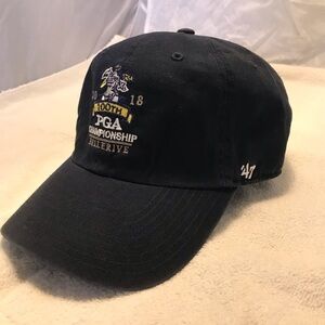 H2 Hat/Cap 47 47Brand.com A Snap Adjustable Strap with Buckle 2018 100th PGA Championship Bellerive on face in silvergoldblue and 47 logo on side in white/Navy Blue 100% Cotton
