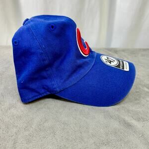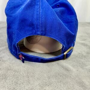 100% cotton. Adjustable back strap. Excellent preowned condition. Blue with raised-embroidered red/white "C" logo on the front. Blue under visor, curved brim. '47 Chicago Cubs Royal Clean Up Adjustable Hat. Worn very little if any.