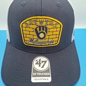 '47 Brand Milwaukee Brewers Region Patch Trucker Adjustable Hat Snapback Blue