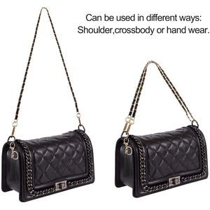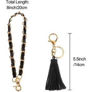 47 Inch Purse Chain Strap Faux Leather Iron Crossbody Chain Strap with 8 Inch Leather Iron Chain Wrist Strap and Black Tassel Decoration for Handbag Purse Chain Straps