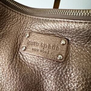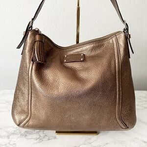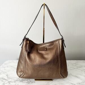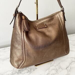 47. Kate Spade Shimmery Bronze Metallic Pebbled Leather Hobo Shoulder Bag Tassel