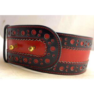 #4730 Vintage Spulcioni Firenze red leather belt size 28 inch adjustable
