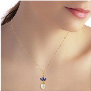 4.75 Carat 14K Solid Gold Necklace Pearl Tanzanite