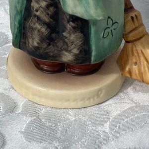 This adorable Hummel figurine, titled "Little Sweeper," stands 4.75 inches tall and showcases a charming scene of a young girl in a dress and bonnet, diligently sweeping. With its classic Hummel appeal, this piece is sure to bring a smile to any collector’s face.