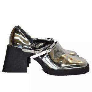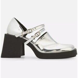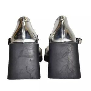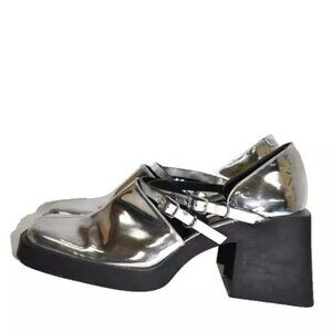 $475 Justine Clenquet Jennie Mary Jane Pump SILVER PLATFORM LEATHER 40 (DB37)