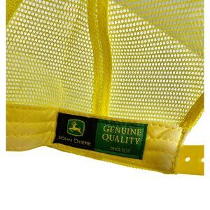 A vintage John Deere green and yellow baseball cap. The cap is adjustable, making it a perfect fit for all. With the famous deer logo, it's a must-have for John Deere lovers.