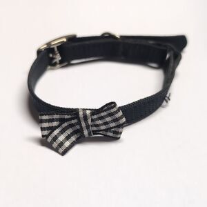 Black Elastic Belt with Checkered Black Ribbon Bow Cuff Bracelet