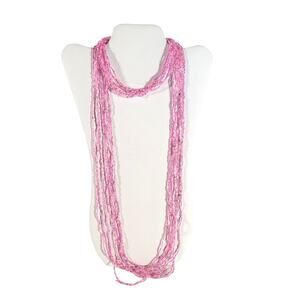 48" Long Pink Seed Bead Necklace Boho Multistrand India Handmade Jewelry NEW