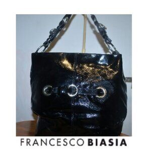 $480 Francesco Biasia Patent Leather Round Rings Hobo Shoulder Bag Purse