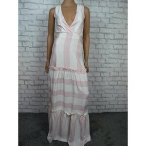 $485 Paper London Zoe Spellbound Pink Ivory Striped Tier Maxi Dress 14 NWT