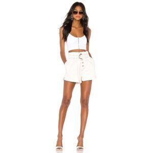 High waistband and exposed button fly add retro styling to these cuffed hem shorts! The pockets and belt add a touch of edgy and on-trend utility. Super versatile.