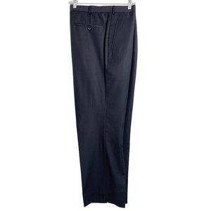 • Pants are pleated, with short side hem slits, relaxed leg