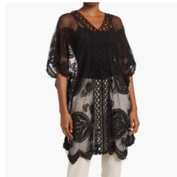 NWT VINCE CAMUTO Embroidered Topper Color: Black Size info: One size fits 0-14. Price: $49 Product Description: Get ready for festival season with this stylish topper that features a beautiful lace design that will complete all of your summer outfits. V-neck Elbow length sleeves Lace construction Dry clean Imported Prod. Item #13704-01/4136