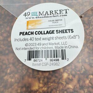 * Swatch Peach Collage Sheets set comprises 40 distinct 6x8 inch text weight papers, thoughtfully packaged in a reusable plastic envelope, a delightful assortment of fun, fall-themed designs featuring elements such as corn, butterflies, plants, text, music, texture, and more—all rendered in various shades of peach.
