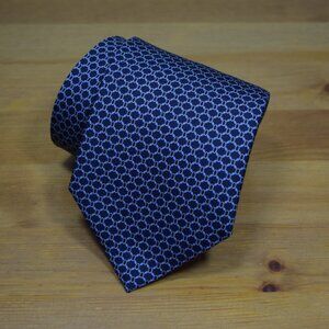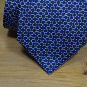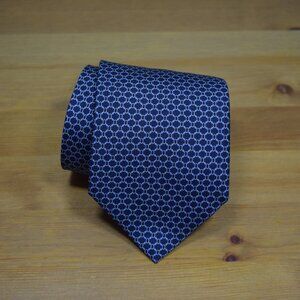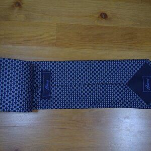 $490 BRIONI Navy Aqua Blue oval Geometric Luxury Handmade Italy Silk Neck Tie XL
