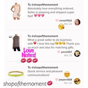 I'm thrilled to have my love note where all poshers can see ❤️ I meant every word. Keep picking great stuff and I'll keep shopping 💰💰 Hope your closet stays unique, fun, and successful!