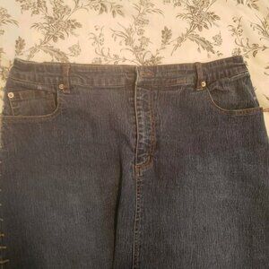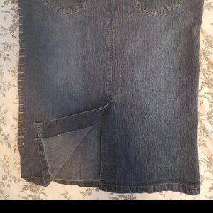 494 Long Midi Modest Denim Wash Blue Jean Y2K Skirt Size 18 Straight Back Slit