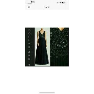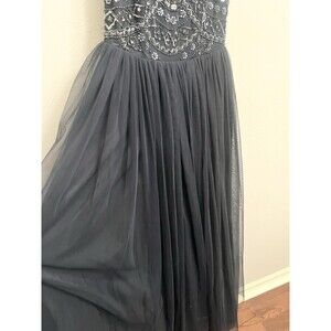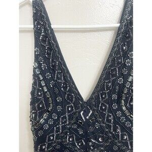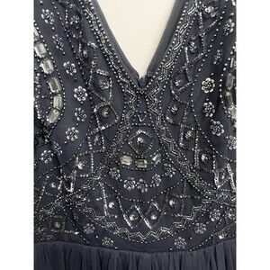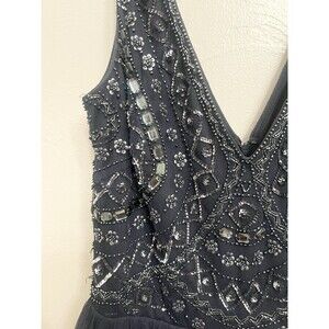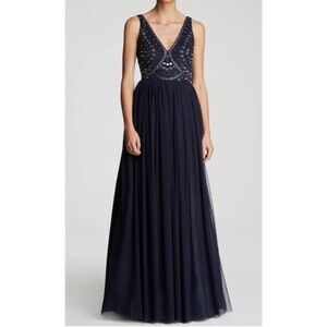 $495 AIDAN MATTOX Navy Embellished Beaded Tulle Formal Dress Gown Size 6 M3020