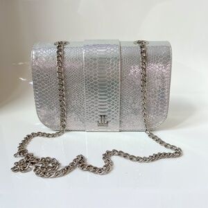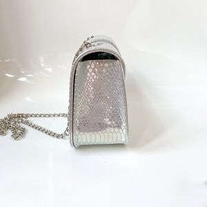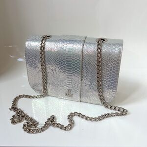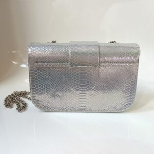$495 NEW Loriblu Italy Leather Silver AB Reptile Finish Medium Shoulder Bag