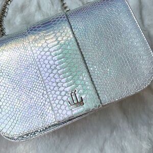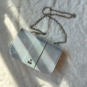 Elegant, evening, classy, classic, art deco, modern, wedding, prom, homecoming, party, going out, date night, holiday party, fashionable, chic, designer, luxury, made in italy, European designer, high end fashion, couture, craftsmanship, statement bag, silver, mermaid, colorful, beautiful