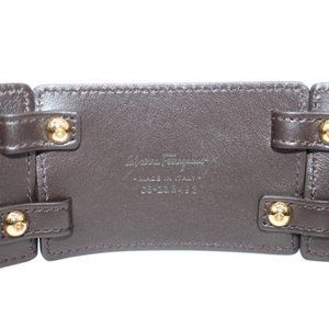 $495 Salvatore Ferragamo DARK BROWN CALF Leather GOLD STUDS Belt Size 70,80,85
