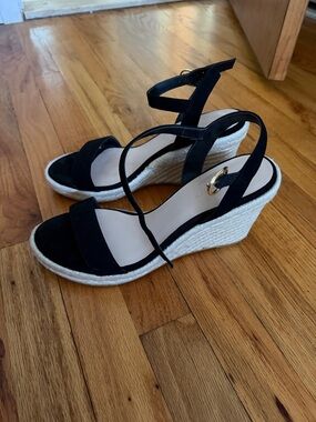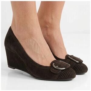 Description: 495$ Stuart Weitzman Wovette Woven Leather Wood Wedge Sandals