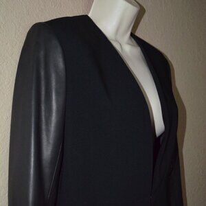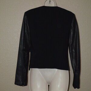 $495 Sz 2 Rag & Bone Black Leather Sleeves Single Button Blazer Jacket
