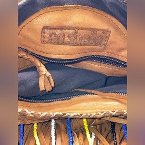 $498 EN SHALLA ANTHROPOLOGIE BROWN LEATHER FRINGE HIPPIE CROSSBODY SHOULDER BAG