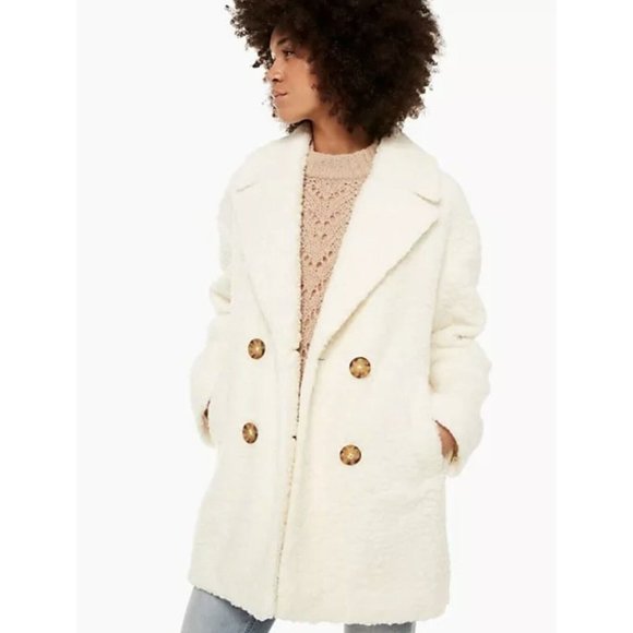 $498 Kate Spade Teddy Coat Double Breasted Size Medium Ivory Cream New!