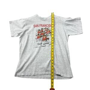Get ready to show off your team spirit with this awesome 49ers Stampede Tee! This shirt is in youth size large and is perfect for any young football fan. The dimensions are 18x24. Represent your team in style!