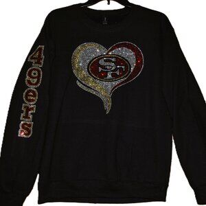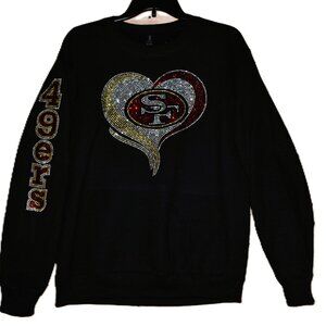 49ers black rhinestone bling sweatshirt sizes S,M,L,XL,2X,3X.4X,5