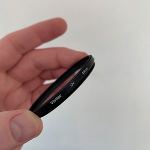 A 49mm UV Filter and a Lens Cap Leash. Both have never been used.
