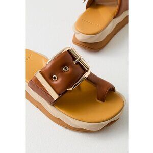 4CCCCEES Mellow Glow Platform Leather Buckle Toe Ring Sandals Brown Size 35 5